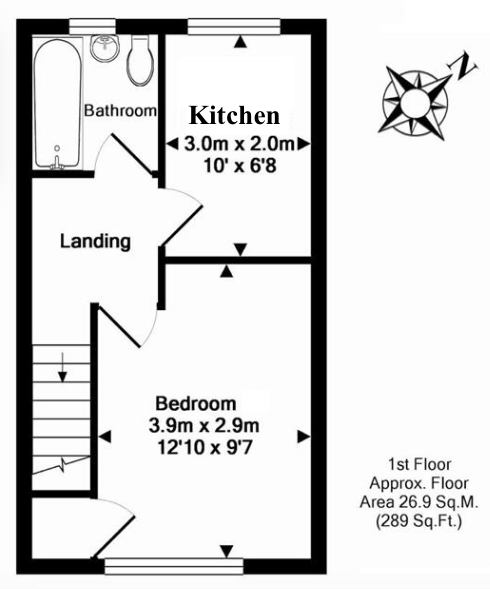 The flat consists of a large bedroom, an independent kitchen, and a private bathroom (toilet, basin, and shower/bath).